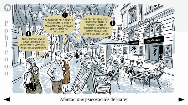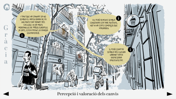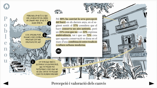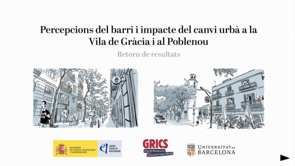 El Grup de Recerca en Interacció i Canvi Social (GREECS) de la Universidad de Barcelona llevó a cabo una encuesta entre habitantes de los barrios de Gràcia y Poblenou de Barcelona como parte de su proyecto de investigación GENTRIPS. Este es el formato que desarrollé para devolución de la encuesta a las personas entrevistadas. Se trata de un PDF interactivo en el que se reflejan los datos más relevantes del estudio y sus interpretaciones.