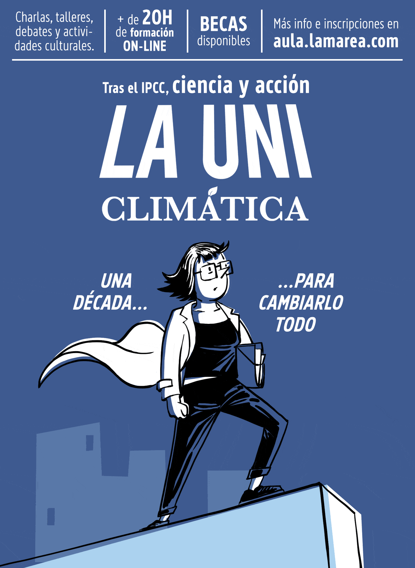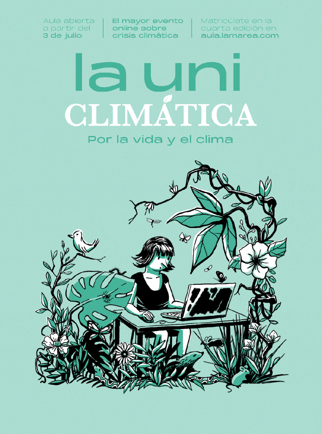 Una selección de las creatividades realizadas para las cuatro primeras ediciones de la UNI Climática, unos cursos organizados por climatica.coop consistentes en charlas, mesas redondas y cinefórums con ponentes internacionales expertos en diversos áreas relacionadas con el cambio climático y la biodiversidad.